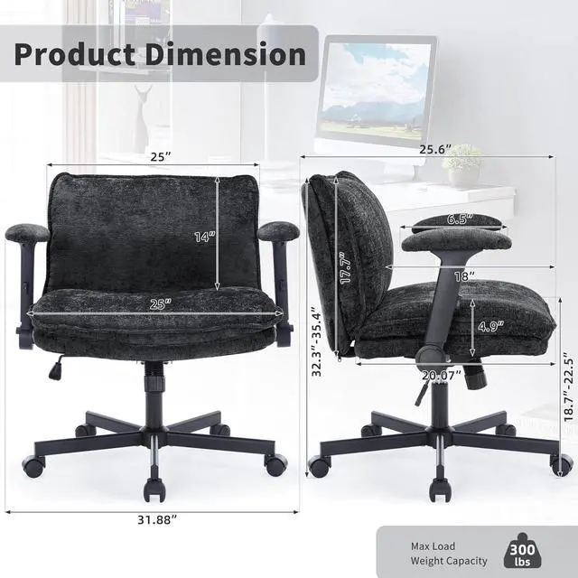 MODERN LOOK, SUPERIOR QUALITY Our design team has rigorously tested this premium office desk chair to ensure durability and style. Tailored for diverse needs, this wide swivel home office chair is designed to be larger and more comfortable than average models. With an elegant silhouette, it seamlessly integrates into any classic, modern, or eclectic decor. This versatile criss cross chair with wheels is a dependable and chic choice for your bedroom, living room, or home office