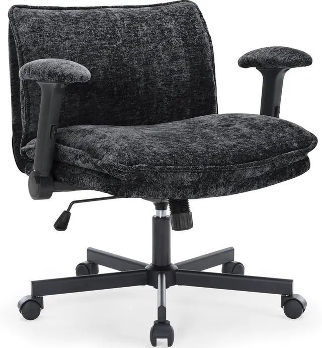 Cross Legged Office Chair with Wheels and Adjustable Flip-Arms, Criss Cross Desk Chair with Thick Cushion, Wide Seat Office Chair for Home Office, Apartment, Bedroom, Black