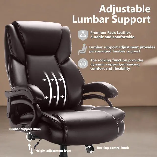 Adjustable Ergonomic Lumbar SupportWith the ergonomically designed adjustable lumbar support, you can flexibly modify the level of lumbar support to fit your waist curve perfectly. This big and tall office chair will efficiently enhance your relaxation of spinal during lengthy work.