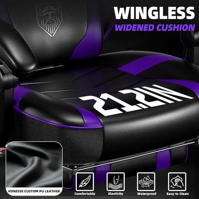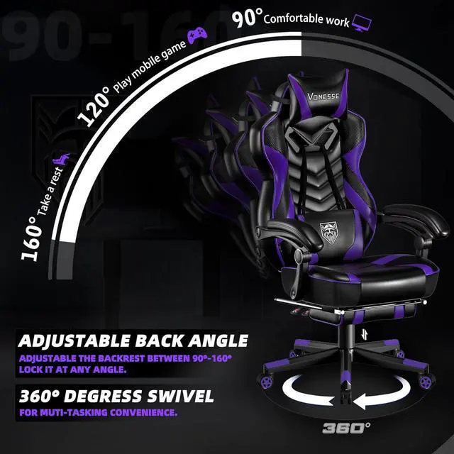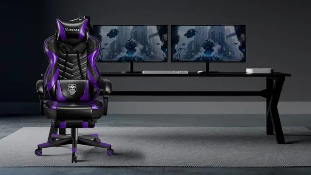 Vonesse Gaming Chair, Big and Tall Gaming Chair with Footrest and Massage, Gaming Chairs for Adults with Lumbar Support, Ergonomic High Back Computer Chair with Pocket Spring Cushion (Purple/Black)