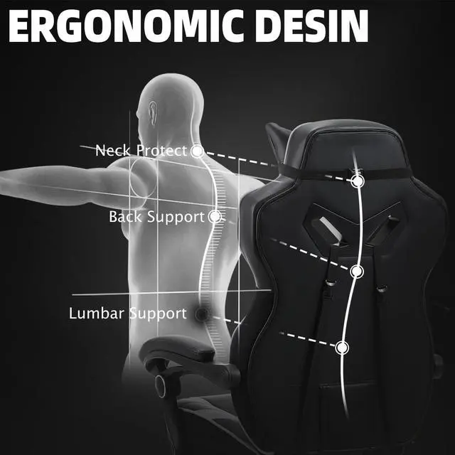 Computer chair brings comfort and relaxation: The game chair is equipped with an adjustable headrest, providing enhanced support for the neck and head. The adjustable lumbar support of the gaming chair with massage comes with a built-in massage function, enabling you to fully relax. What's more, the gaming chair with footrest offers an extra level of comfort, making it the perfect choice for prolonging both gaming and working sessions.