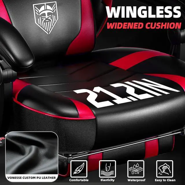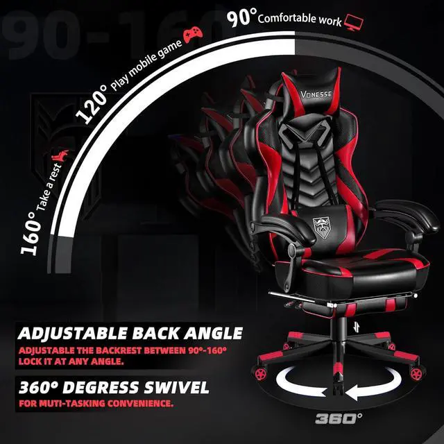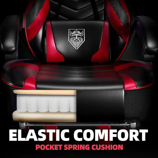 Vonesse Gaming Chair, Big and Tall Gaming Chair with Footrest and Massage, Gaming Chairs for Adults with Lumbar Support, Ergonomic High Back Computer Chair with Pocket Spring Cushion (Red/Black)