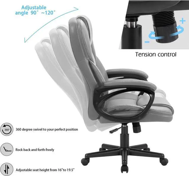 Comfortable high back office chair with cushioned back and seat upholstered provide extra support, large thick pad, soft texture slow down the pressure of the sedentary