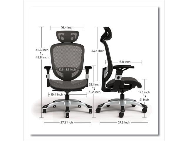 - Adjustable seat height, arm height, headrest (height and angle), lumbar support, tilt tension and tilt lock.