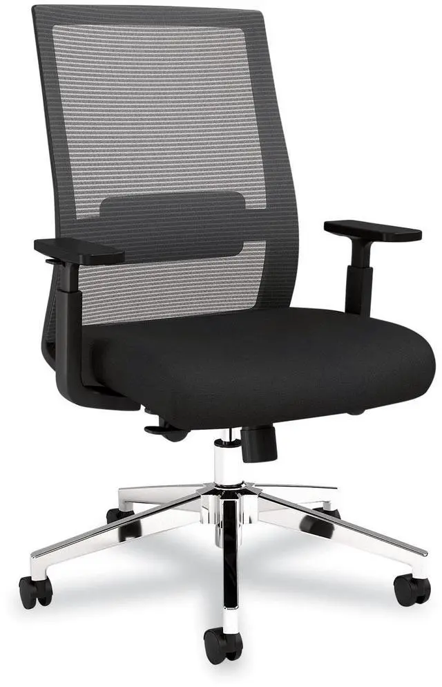 • Features adjustable seat and arm height, adjustable lumbar support, tilt tension knob and tilt lock.