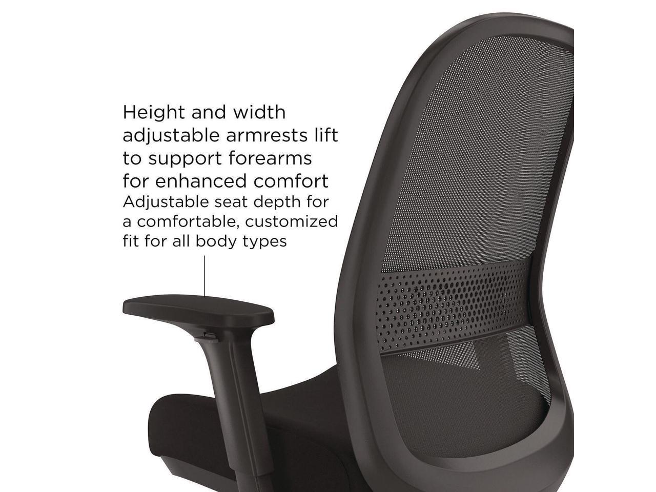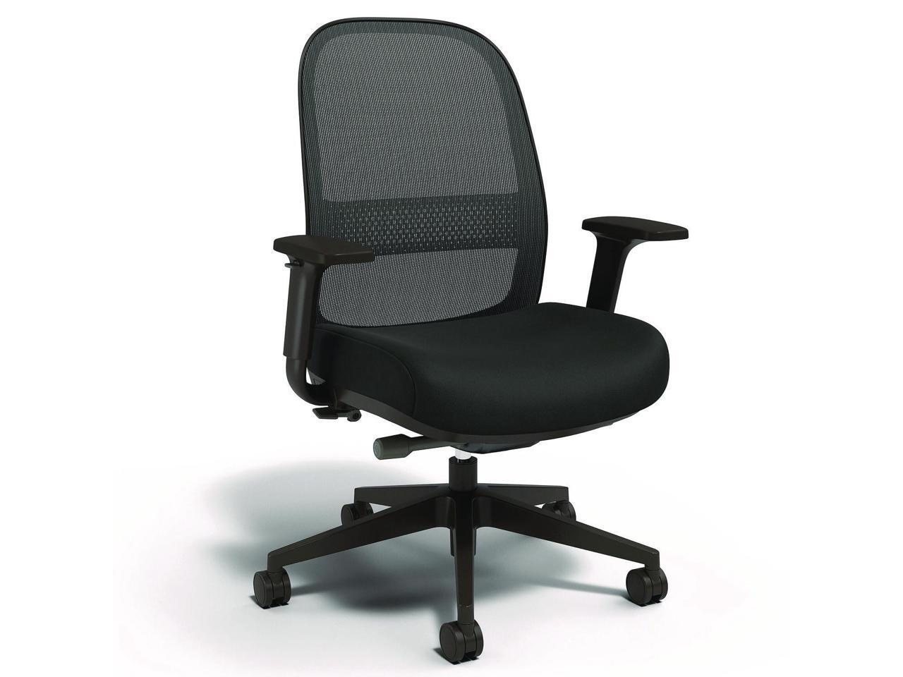 - Height and width adjustable chair arms align shoulders and support forearms.