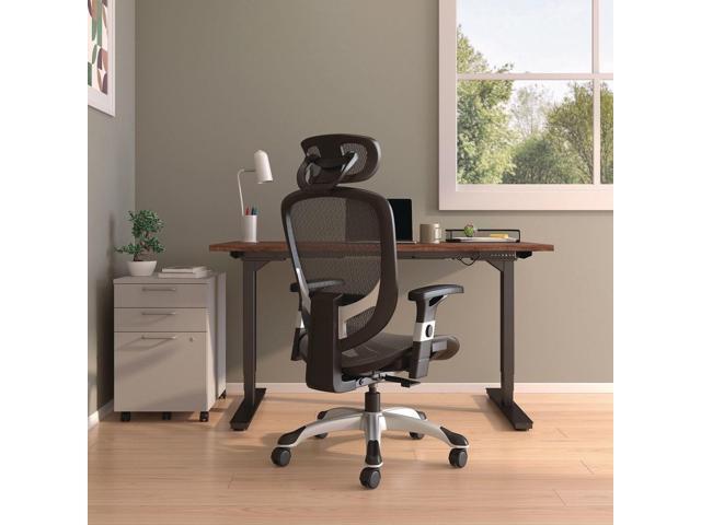 - Arms move up and down to reduce neck strain and support the shoulders.