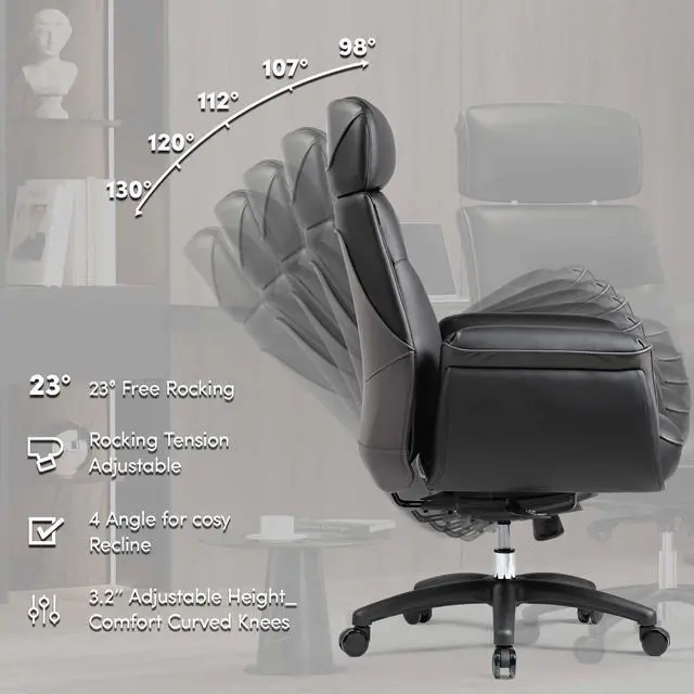 Personalized Posture: 19-22'' height adjustable seat & 2.4 '' headrest height range to comfort knees & relieve stress on neck; 23°