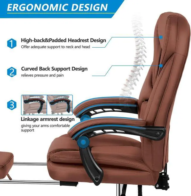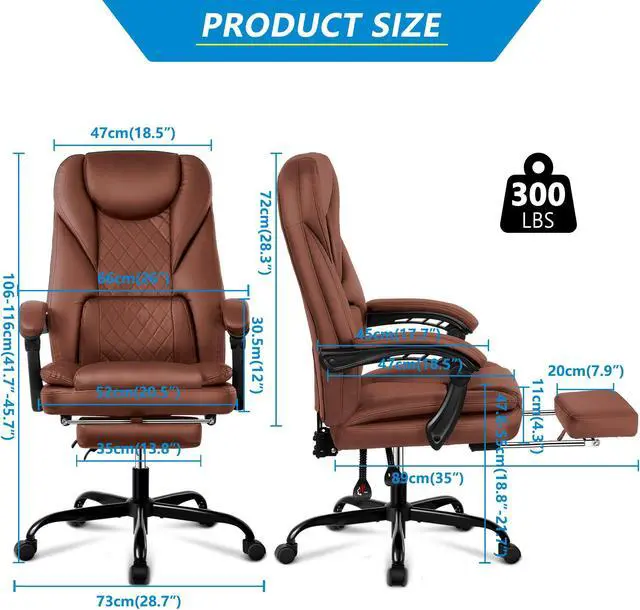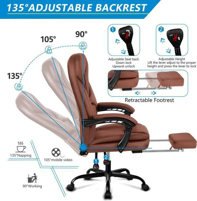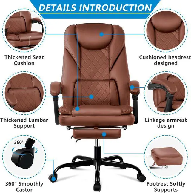 The executive office chair is made of upholstered, carefully-selected PU material that is waterproof and resistant to stains, easy to wipe clean, and filled with high-density sponge padding for a natural leather look for an upscale look.