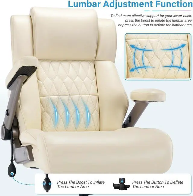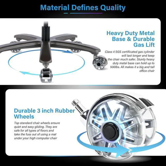 This big office chair is designed to accommodate the needs of larger individuals and provide them with all the comfort they need. It is a high office chair with a generously-sized, breathable seat cushion with elastic spring pack, and adjustable height and heavy duty metal base that enable easy customization for both big and tall users.