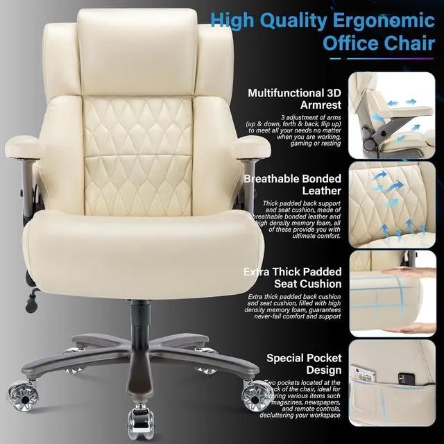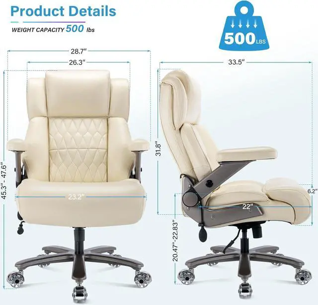 Are you worried your leather office chair will not fit in your tight working space? Thanks to its ergonomic 3D flip-up arm design, the FAMIC executive desk chair takes up minimum space in your work-from-home setup or shared workspace and can be easily stored when not in use to help you free up more room.
