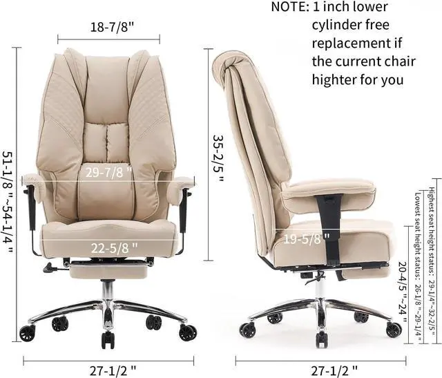 Big and Tall Office Chair 400lbs Wide Seat, Leather High Back Executive Office Chair with Foot Rest, Ergonomic Office Chair Lumbar Support for Lower Back Pain Relief (Beige)