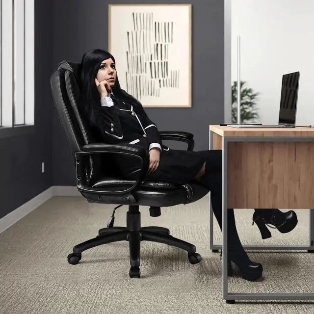 • Leather office chair cradles your body with soft leather and a double padded foam seat cushion, 300 pound weight capacity, padded armrest for an upscale look and max comfort you can sink into it,this executive chair will improve your work efficiency, work and rest go together.