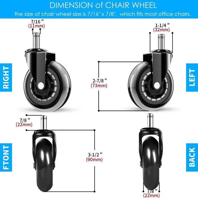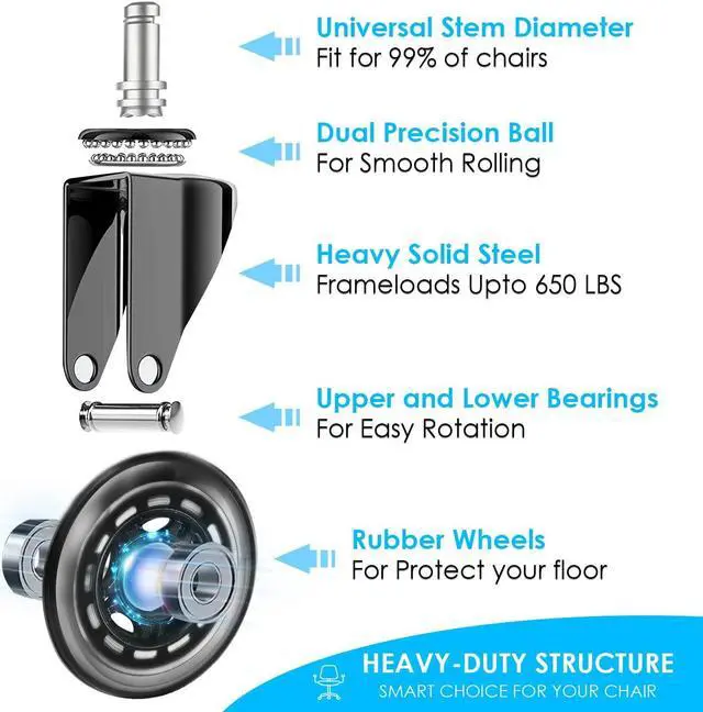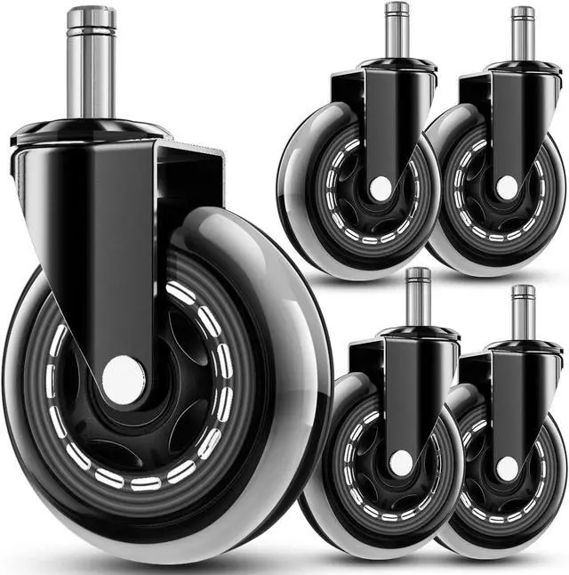The casters are made of rubber, they have a good cushioning effect and will not make a squeaky rubbing sound on the floor when in use, enjoy smooth and quiet rolling and stay focused and relaxed with these casters, a squeaky, rickety office chair wheel is a telltale sign that theyre cheap and poorly made.