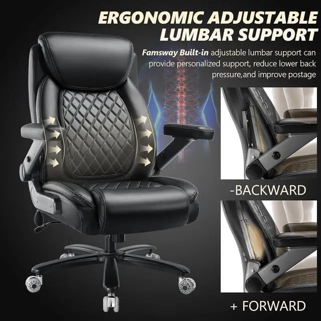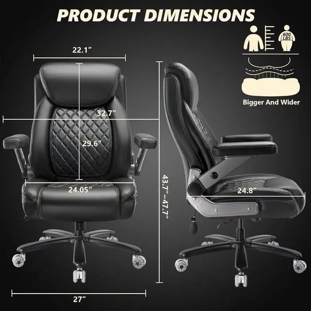 Forget flimsy office chairs that squeak loud. This plus size home office desk chair is built like a tank. Its sturdy frame and high-quality materials makes the office chair supportive and heavy duty. Smooth chair wheels, SGS certified Class 4 gas cylinder, and a strong metal base have all endued over 100, 000 tests, being tested for safe use. Comfort is definitely not compromised with this big and tall desk chair.