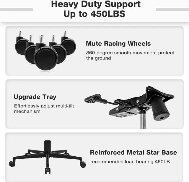 This heavy duty office chair uses 20.7" wide and 5.1" thick widened and thickened memory foam cushion, specifically adjusting the hardness to match the demanding office scene. Even if we work for a long time, we can protect and support our hip and lumbar health at any time. Wrapped with high-quality cotton and linen fabric, it is skin friendly, breathable and fast drying, and durable.