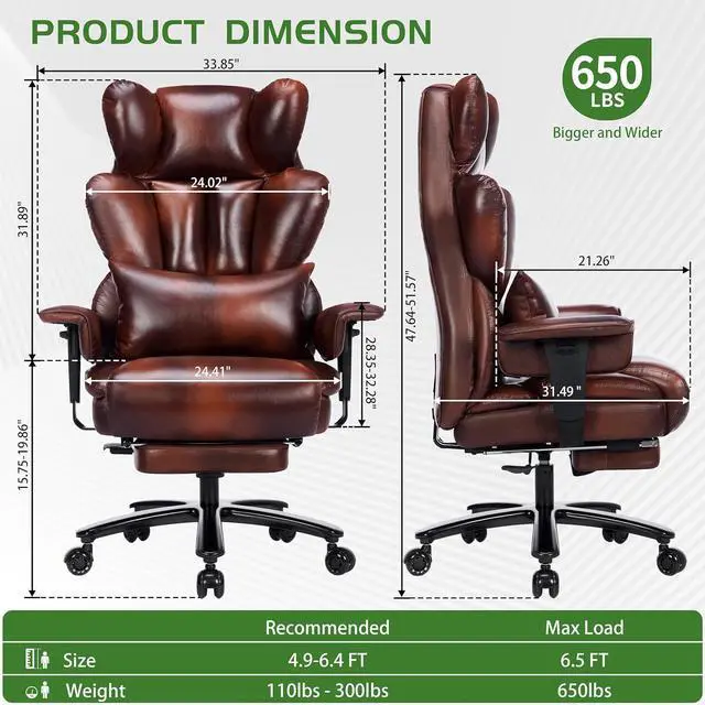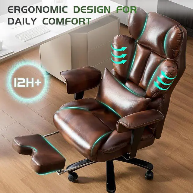 Adjustable Executive Office ChairThis executive office chair offers 360° rotation, allowing you to move freely around your workspace. It also has adjustable tilt angles, armrests, seat height, and a retractable footrest to provide personalized comfort and support. The BLISNEST reclining chair is a great addition to any home office desk, combining comfort and flexibility.