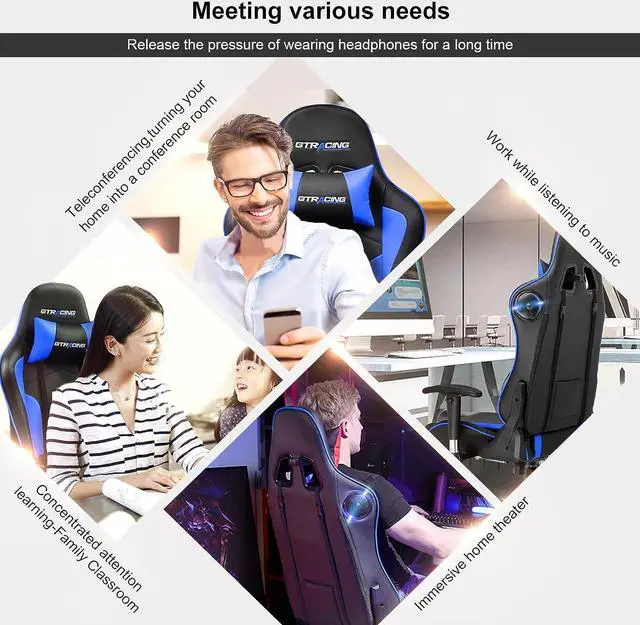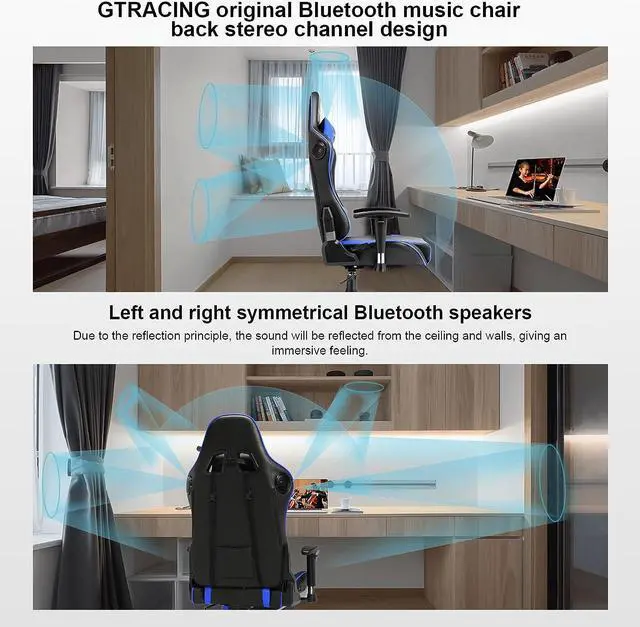 Enjoy Music: The chair is equipped with two Bluetooth speakers, which can be connected to your smart phone, tablet or other Bluetooth enabled devices by a Bluetooth Adapter (not included) within 5 meters, it will bring you remarkable and richly detailed stereo sound in solid bass, clear and full audio. You can enjoy music for 6 hours when fully charged.