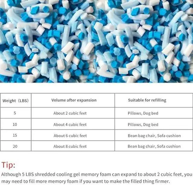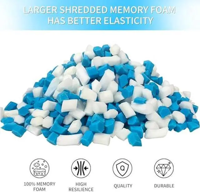 WIDE APPLICATION - Bean bag filler is easy to rebound, durable, and can be used to fill various things. Our memory foam filler is suitable for cooling memory foam pillow, bean bag chairs, dog beds, stuffed animals, couch cushion and DIY crafts that need filling.