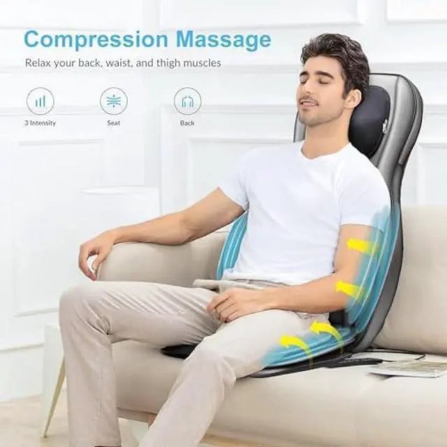 Optional Heat & Adjustable Compression Massage - The full back massager has a heating pad that delivers gentle warmth to the back. ADJUSTABLE COMPRESSION-massage on waist & hips that you can choose. Adjustable 3 intensity settings are available.
