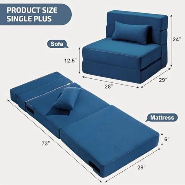 Excellent Fabric & FoamThis High-density memory foam inner, this foldable sofa bed is comfy and uniform, well-rebound with great support, and is not easily deformed. The fabric is breathable, resilient, stylish, removable for washing, and quality guaranteed.