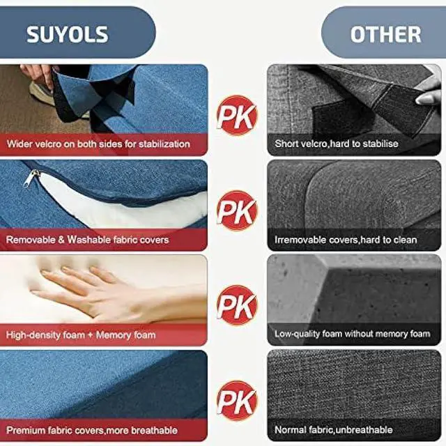 Mulitpurpose & Space SaverSUYOLS folding sofa bed perfectly fits different kinds of scenarios such as living room, guest room, apartment, upstairs loft, bedroom, office, playrooms, dorms, etc. It can be easily converted into a storage space, which is very space-saving.