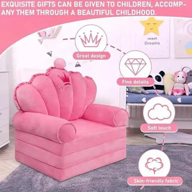 : Let your toddler relax on our toddler couches that fold out. The kids sofa couch wide armrests provide all-day support and comfort. girls can read, play, or watch their favorite shows on our cute and comfy kids lounge chair. Perfect for the children's room, play corner, living room, or kindergarten