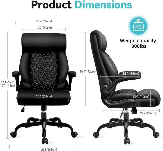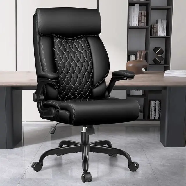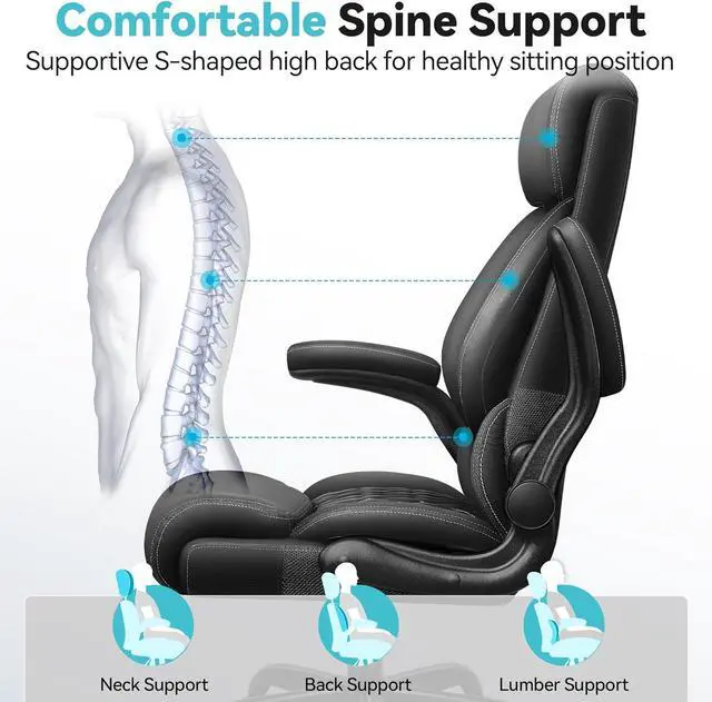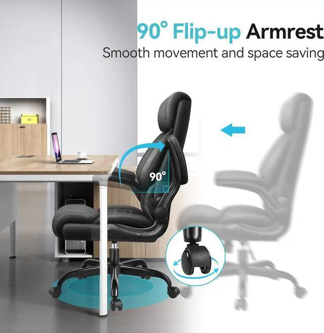 Multifunctional Flip Arm DesignThe flip-up leather armrest design provides greater flexibility when needed, helping you save more space with ease. The waterfall armrest design not only relaxes your elbows, but also improves the overall comfort of the chair, allowing you to work all day without fatigue. Perfect for a variety of uses such as office, home, conference room, game table and boss desk.