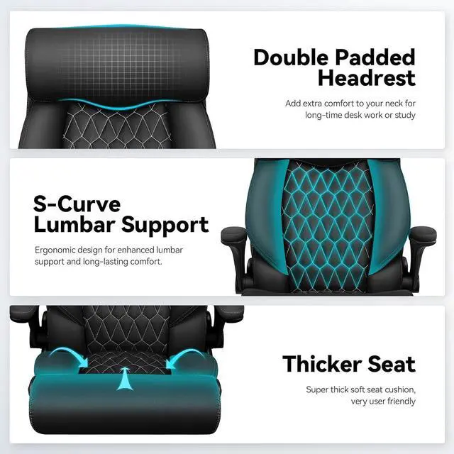 Ergonomic Executive Office ChairThe ergonomic curved backrest supports your back and effectively relieves your fatigue. The padded headrest and armrests provide additional support. With both rocking and locking modes, you can adjust the angle of the backrest from 90° to 135° to help you find the most comfortable sitting position.