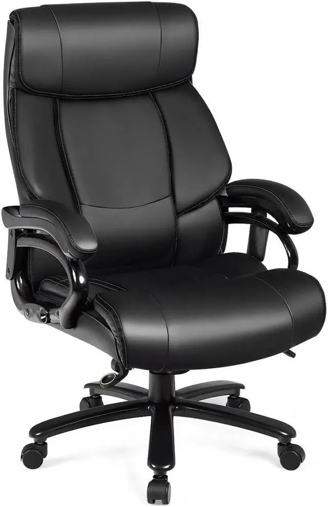 Big and Tall Office Chair: The big and tall executive chair conforms to the ergonomic principle, reflected in the integrated headrest, humanized lumbar support, wide seat and padded armrest. It fits well with your body curve and thus takes the sitting comfortableness to the next level. Also, it is worth mentioning that it is designed with a rocking function, easier for to relax your body.