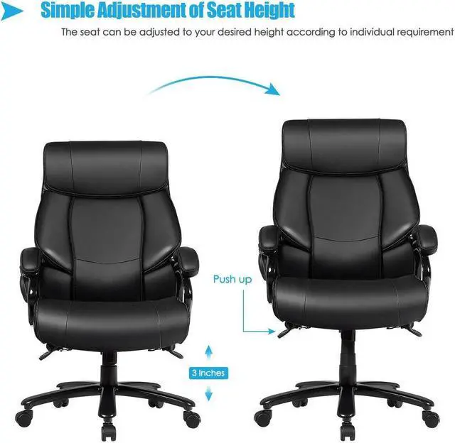 Fairly Easy to Find Your Desired Height: Considering that individual requirements differ a lot in different occasions, the executive chair adopts height-adjustable design, to fulfill different needs. Therefore, you are capable of adjusting the seat to your desired height, according to either the desk height or your sitting posture, just by means of the right handle beneath the seat.