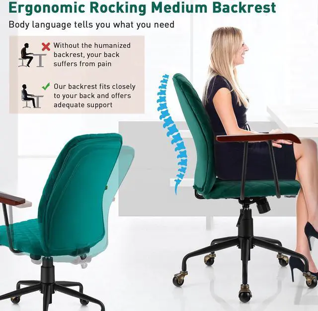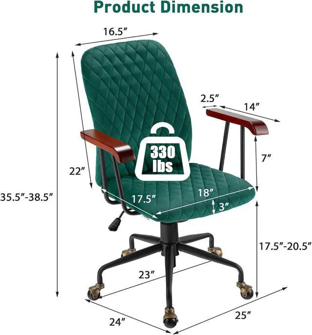 Selected Materials for Comfort: The backrest and seat are upholstered with high-density sponge and wrapped with soft velvet,both materials provide very cozy touches. When you lean back on the home office chair,your arms will be supported by rubber wood armrests just right to relax.
