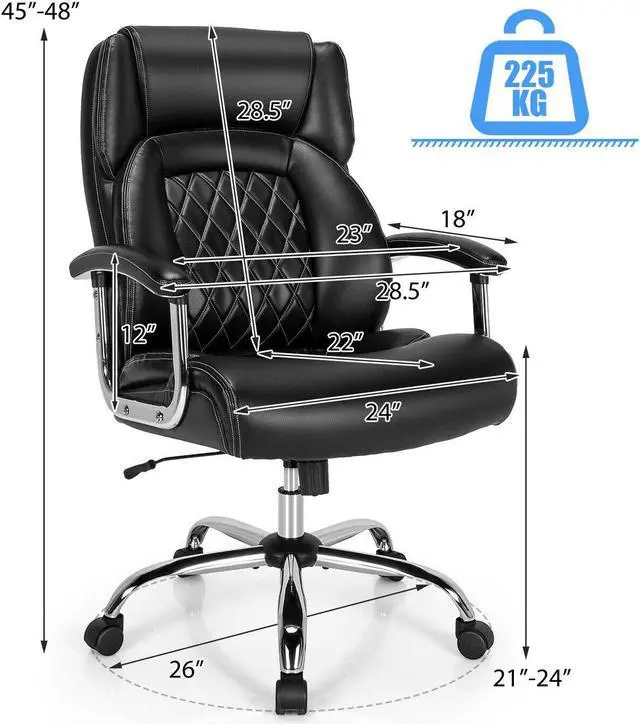 Adjustable Seat Height and Rocking Backrest: This executive chair features a height-adjustable and 360-degree swivel seat. You can effortlessly adjust the seat to your desired height. And the 360-degree rotating seat enables you to turn in any direction. Additionally, the rocking backrest can be freely rocked from 90-degree to 115-degree.