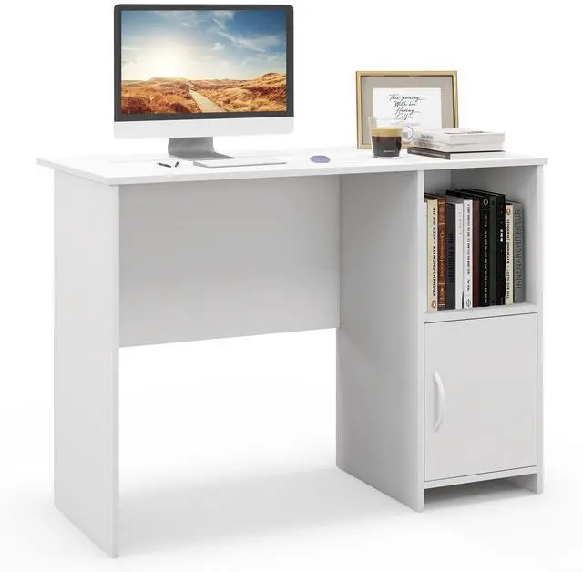Open and Enclosed Storage Space: Except for the wide tabletop, the study desk features an open shelf and a single door cabinet that keeps books, files and other sundries in order. Thus, you will no longer be bothered about messy room.