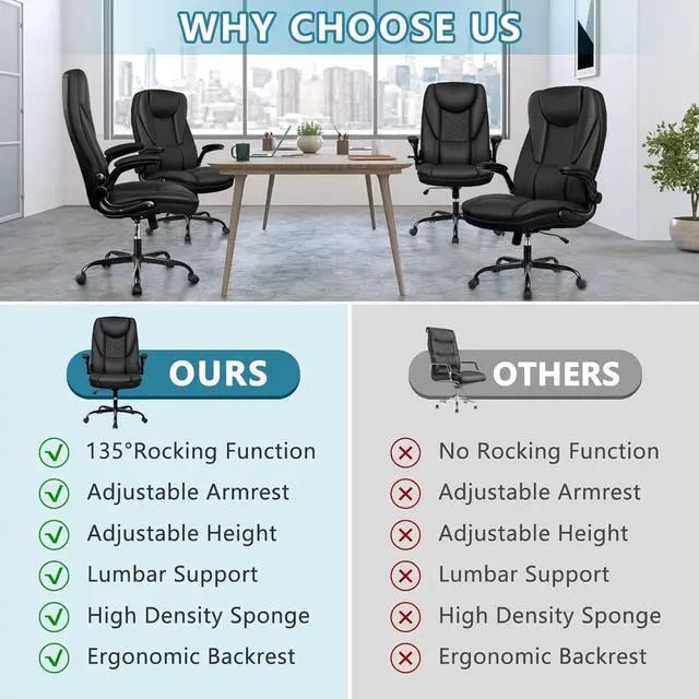 Ergonomic Office Chair: Comfortable high back office chairs and soft cushions provide extra lumbar support to relieve spine back and lumbar pain during long working hours, soft cushions relieve sitting stress, our office chairs can support up to 300 pounds, suitable for most customers choice.