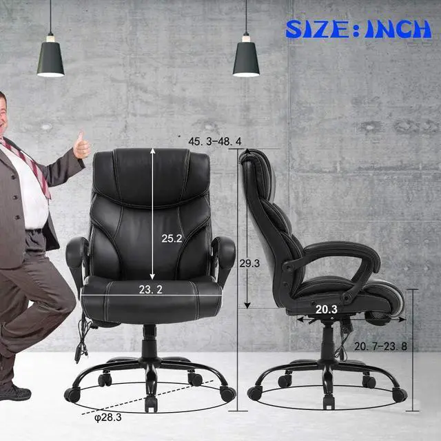USB MASSAGE LUMBAR SUPPORT - Big tall office chair have excellent breathable PU leather design, soft and comfortable. Massage office chair have a vibrator with button, slight vibration can reduce the fatigue caused by your long hours of work.