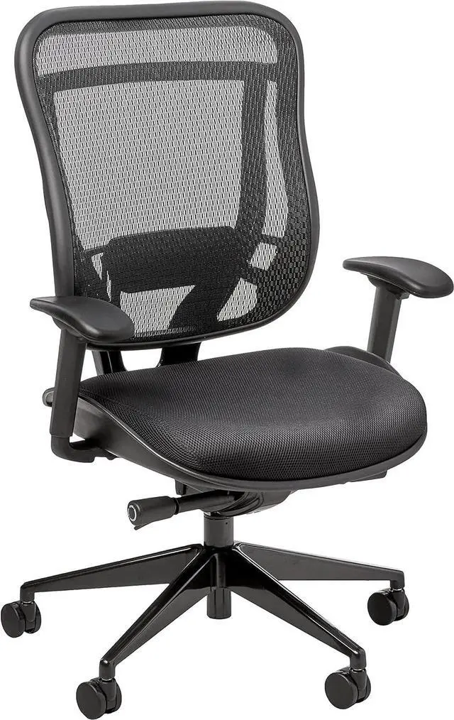 Breathable mesh back and seat with adjustable lumbar support and one-touch pneumatic seat height adjustment