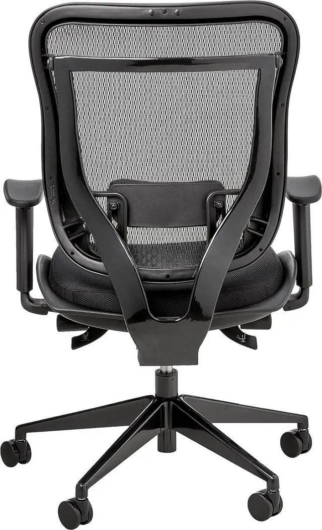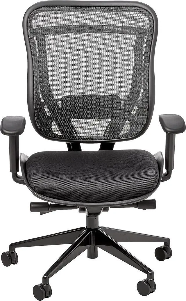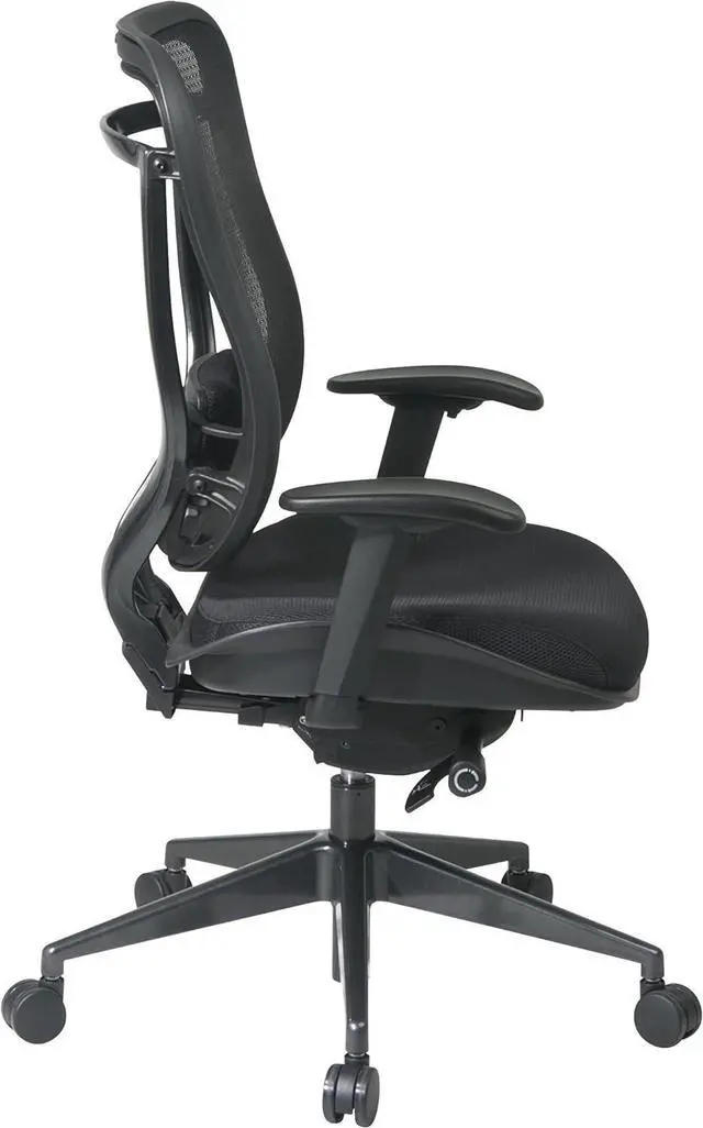 Deluxe 2-to-1 synchro tilt control with 3-position lock, anti-kickback and seat slider, height adjustable arms with polyurethane foam pads