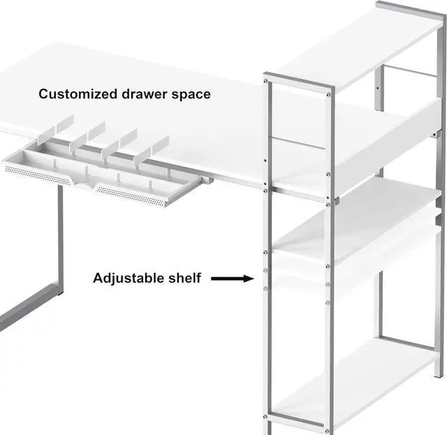 Desk with 3 tier shelves, great for storage your items while easy to access.