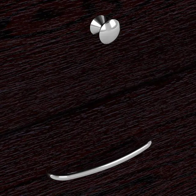 Accepts Cabot Return (sold separately) to form an L Shaped Desk. Drawers fitted with elegant Chrome-finished hardware to complement the Espresso Oak finish. Meets ANSI/SOHO standards for performance and safety.