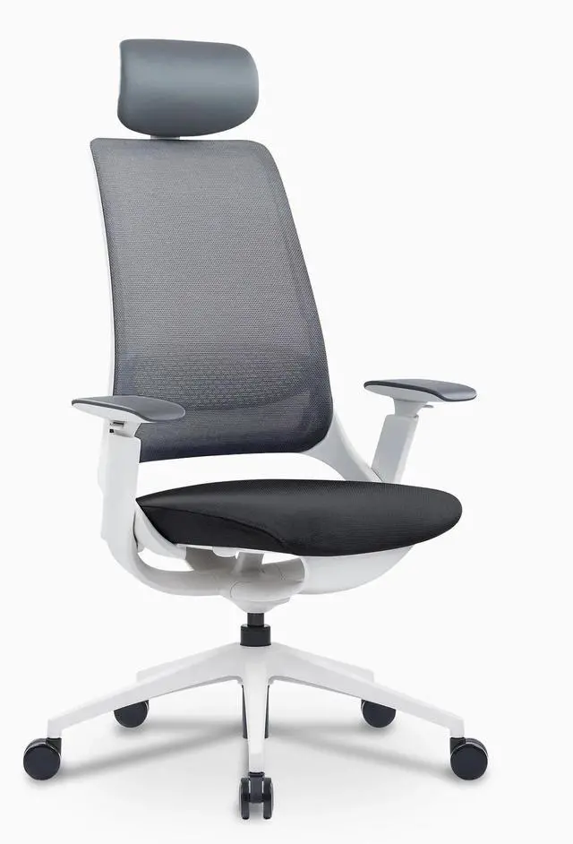 Desky Pulse Supportive Desk Chair - White / Headrest