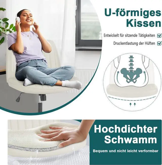 Adjustable HeightThe height of this armless desk chair is adjustable, enabling to match most tables. The adjusting height range from the seat cushion to the floor is 15.94 - 19.69 that suits for all ages.