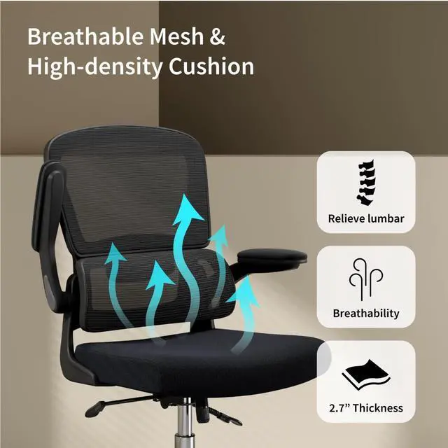 Space SavingThe Home office desk chair with flip-up armrests can maximize space saving and keep your room tidy and clean. Whether at home or in the office, you can flip the armrest up and put the home office chair under the desk.