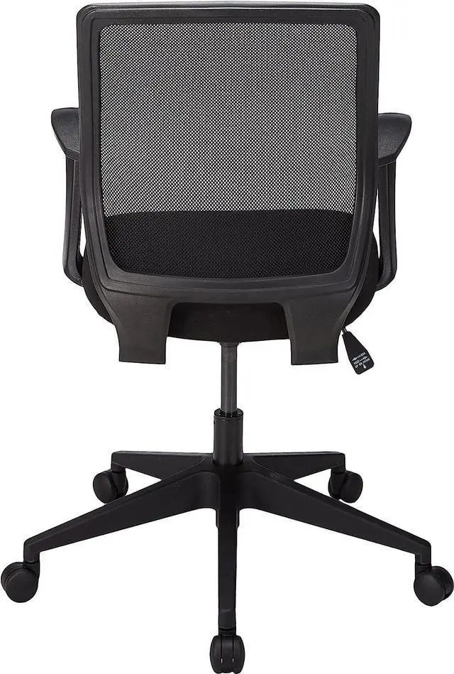 Breathable mesh Back and contoured Seat with upholstery Functions: pneumatic seat-height adjustment, 360-degree swivel, tilt, tilt tension and tilt Lock Fixed arms; 5-star base with dual-wheel hard casters Capacity: 275 lb.