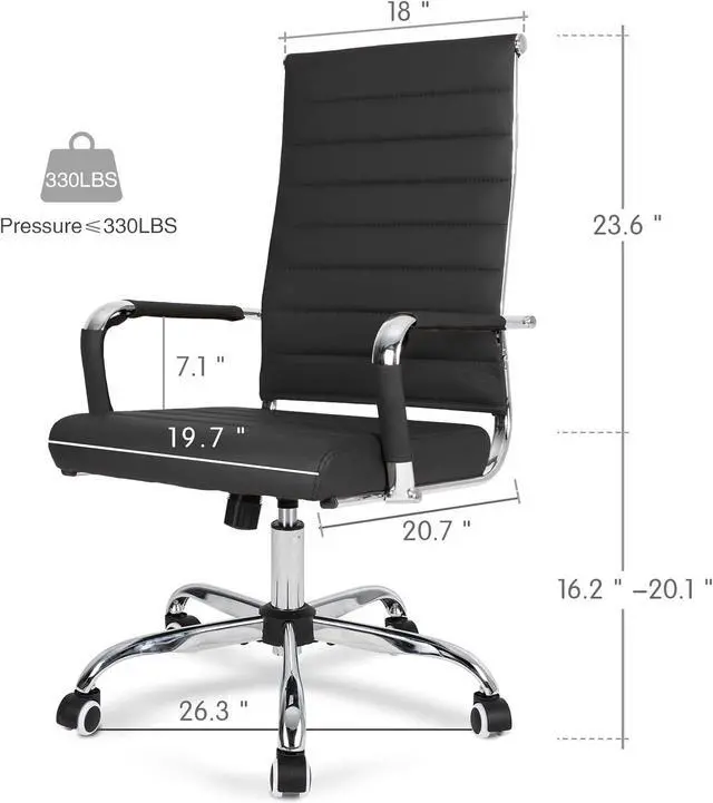 Thoughtful DesignS-shaped cushioned backrest combined with lumbar support built into its curve offers efficient support. Meanwhile, superior PU leather and upholstered seat are adopted in this high back office chair, which ensures enjoyable sitting experience.