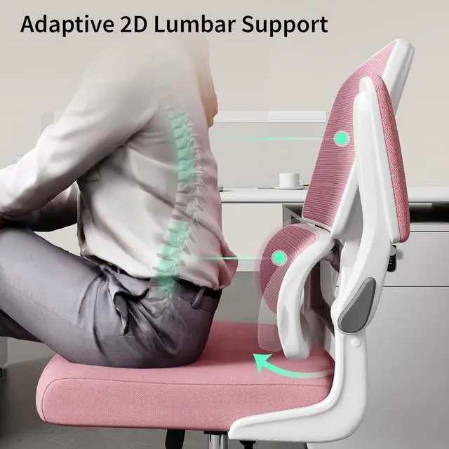 Adaptive 2D Lumbar SupportThe ergonomic office chair is designed with an adaptive 2D lumbar support, the pink mesh office chair with double backrest provides full support for your waist and relieves your lower back pain.