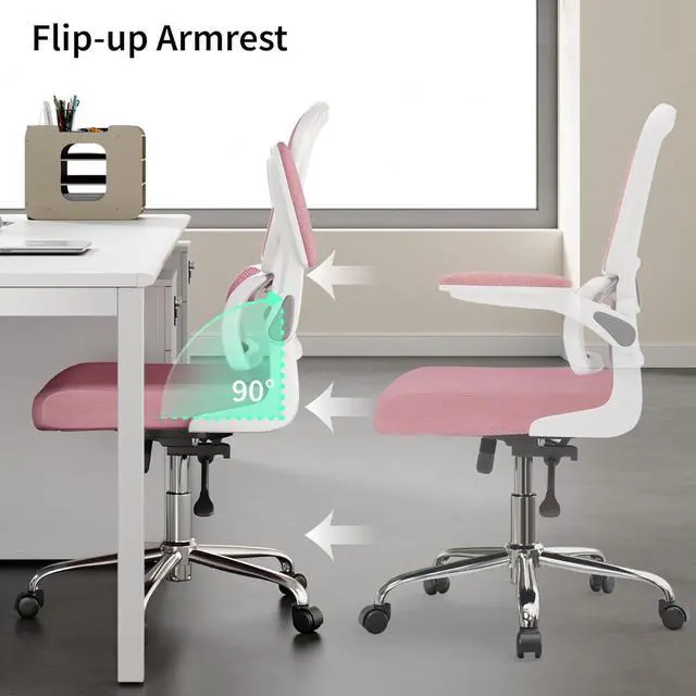 Space SavingThe Home office desk chair with flip-up armrests can maximize space saving and keep your room tidy and clean. Whether at home or in the office, you can flip the armrest up and put the home office chair under the desk.