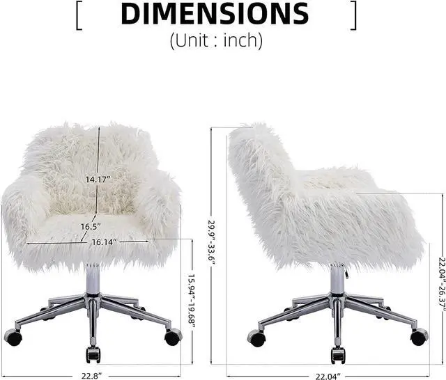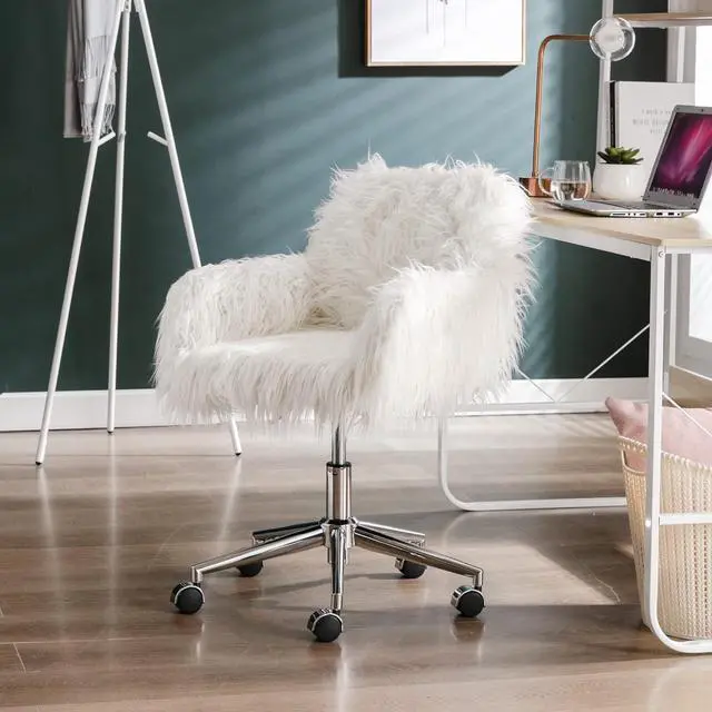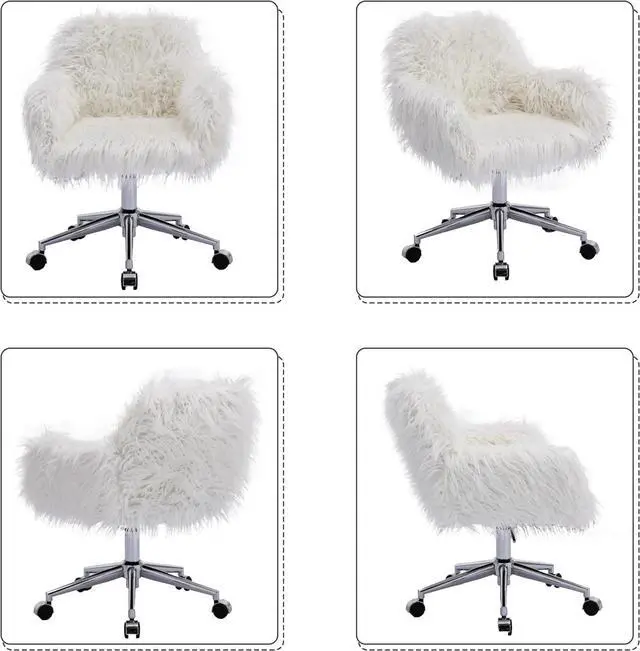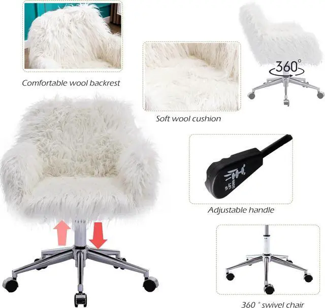 Unique & Beautiful Design: This stylish middle back fluffy desk Chair is made of high quality and comfortable long faux fur, which is not only beautiful and lovely, but also very soft and comfortable when you sit on it. It' s a good gift for girls women
