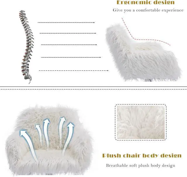 Comfy Seating Experience: The faux fur cushions provide you with a comfortable seating experience. The seats are made by skilled craftsmen and are lined with fine faux fur to give you soft and charming feel, while high-density foam fillings provide extra filling. The soft touch and fluffy faux fur cushion make this makeup chair more modern and fashionable