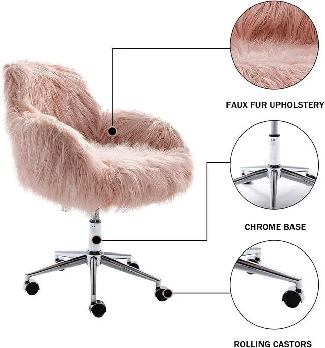 Multi-Functional Pink Furry Desk ChairsThis elegant swivel chair is suitable for every environment, which is perfect for living room as a leisure chair, bedroom as a vanity chair, office as a computer chair, study room as a study table chair and reception area as a guest chair etc